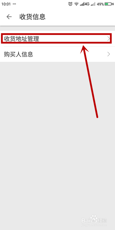 5、在【收货信息】页面,单击【收货地址办理】选项