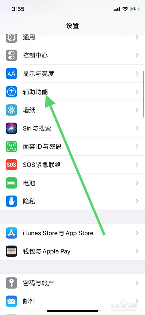 3、点击辅助功能页面显示与文字巨细进入。