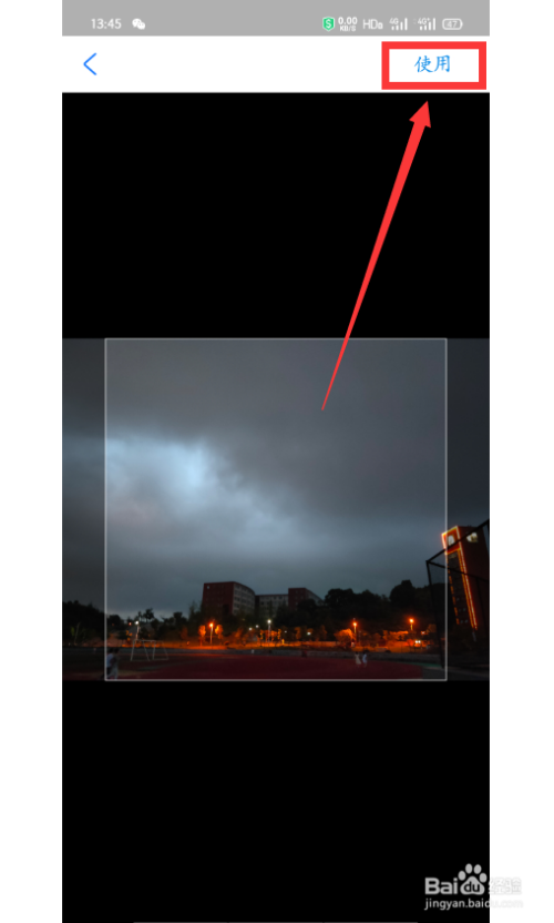 第六步:在遴选的照片上裁剪好需要的部位,点击右上角的【利用】