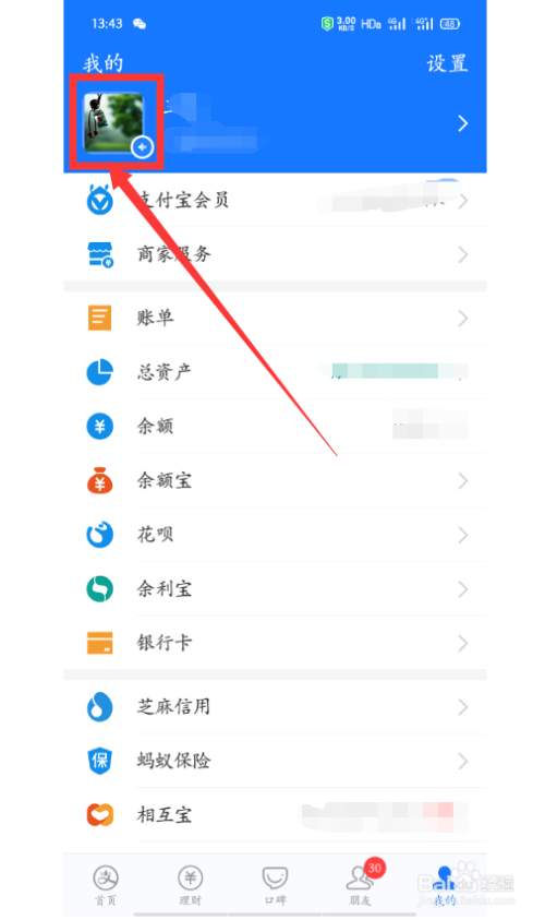2、点击【头像】