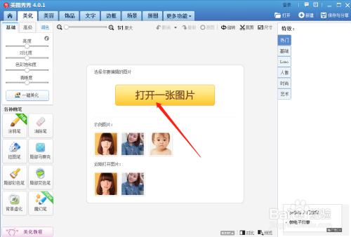 点击“打开一张图片”,将需要的图片上传到美图秀秀