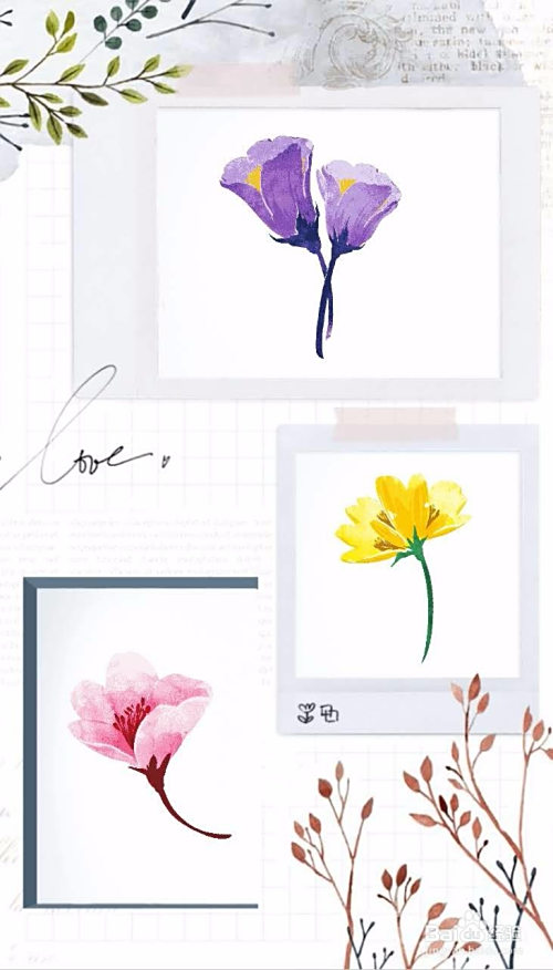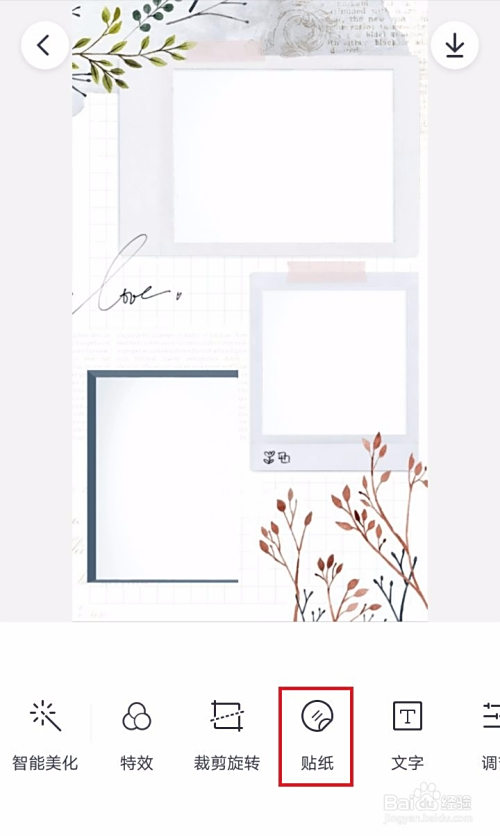 添加3张花贴纸,调整花的位置和巨细,保留到手机相册。建造好的拼贴画如下图所示。