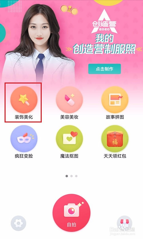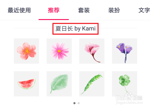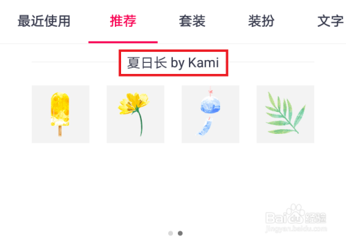 打开“装饰美化”,选择布景图片,再点击“贴纸”,找到要添加的贴纸。