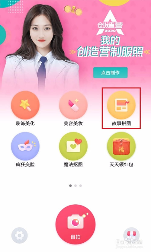 举例:选择3张贴纸和1张拼图模板建造拼贴画,操作步调如下所示。