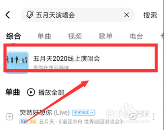 在搜刮栏中输入“蒲月天演唱会”点击"搜刮"。