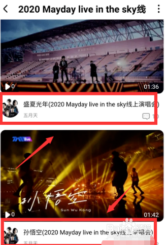 点击列表中的任一音乐视频。