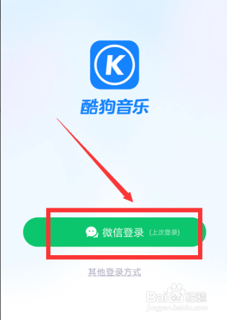 解锁手机,点击登岸“酷狗音乐"APP。