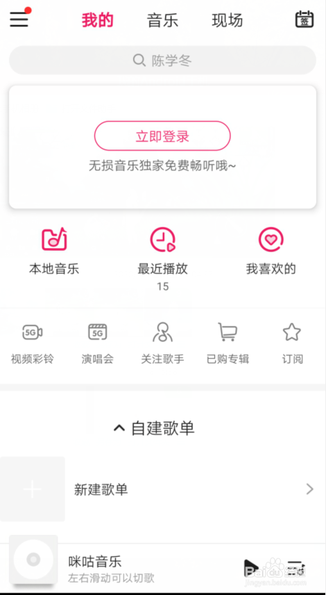 1、打开咪咕音乐APP,登录咪咕音乐账号。