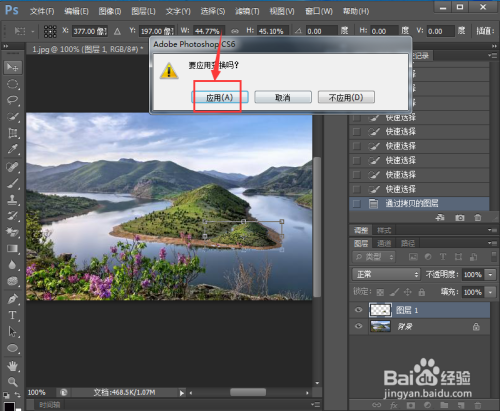 按ctrl+T,将复制的岛屿变小一点,按应用;