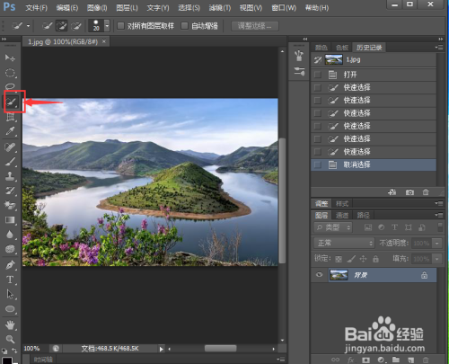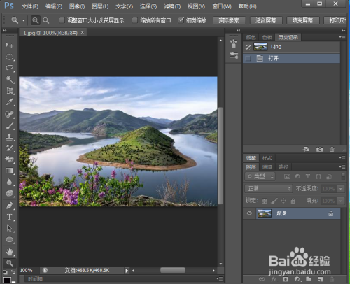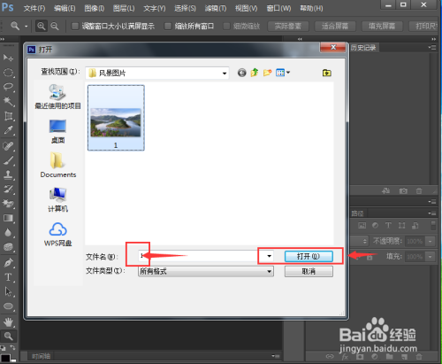 按ctrl+O,在打开窗口选中要处置的图片,点击打开;