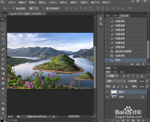 用移动东西将复制的新岛屿移到旁边合适的位置,我们就在ps中复制好了一个岛屿。