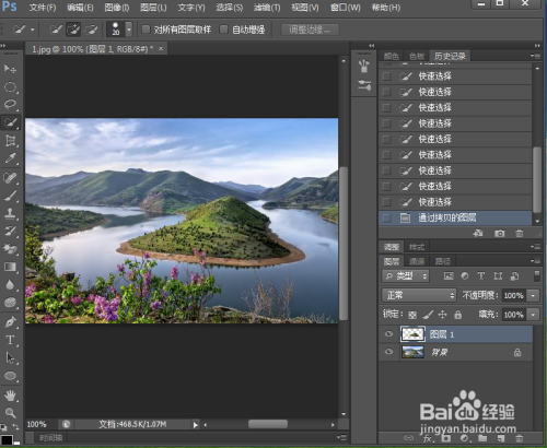 按ctrl+j,将选中的岛屿复制到新图层中;
