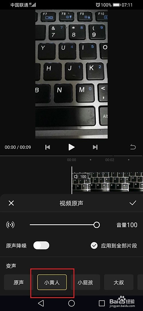 第五步进去视频原声之后,可以选择变声的声音,如下图所示: