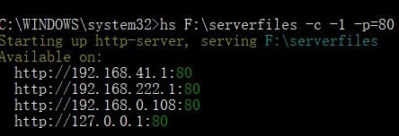 指定端口:hs -p:端标语(与其他程序不冲突即可)
