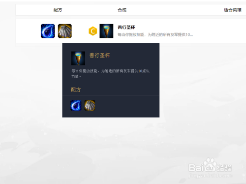 善行圣杯:女神泪和负极大氅合当作,佩带的英雄释放技术会给四周英雄回蓝。