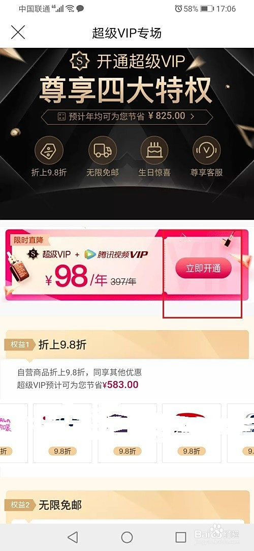 第三步进去超等vip之后,点击当即开通,如下图所示: