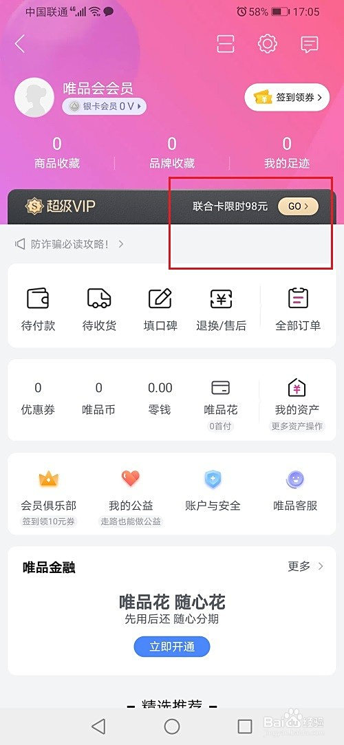 第二步进去唯品会小我中间之后,点击超等vip,如下图所示: