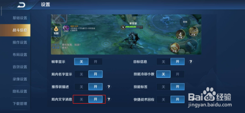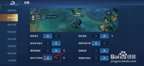 点击打开局内文字动静后面的开关(打开开关)