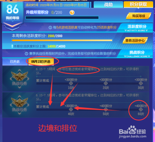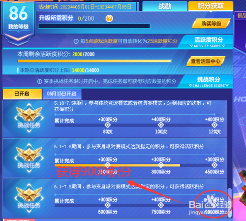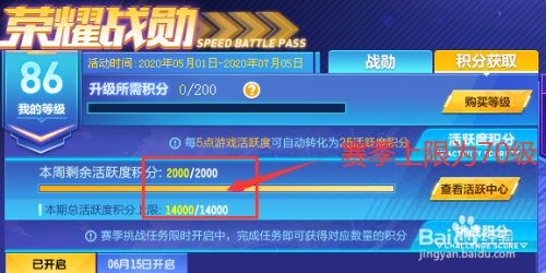 然后完当作活跃使命,上限为14000积分,200分一级也就是70级。