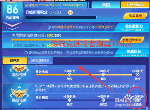 之后完当作挑战使命,总共可以获得40级。挑战使命1是完当作传统竞速或者道具赛最多120次。