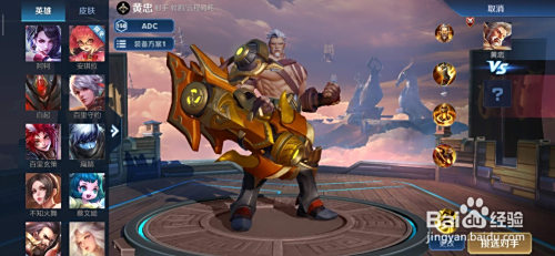 打开王者荣耀,选择黄忠这个英雄,进入游戏对战