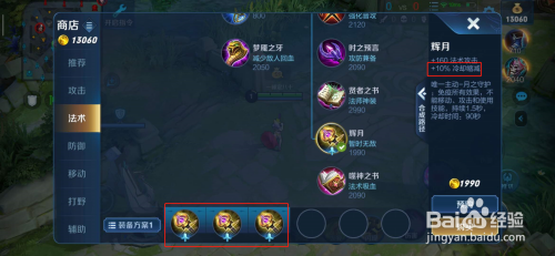 在商铺里采办3件叫辉月的装备,每件+10%冷却缩减,3件共+30%冷却缩减