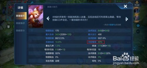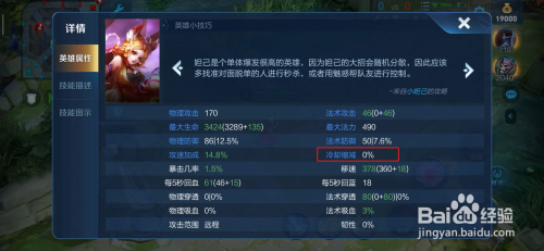 点击右侧的三角形,查看英雄属性。可以看出冷却缩减为0%