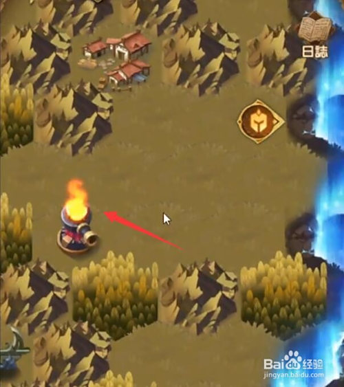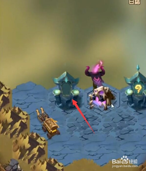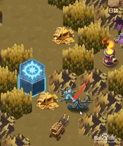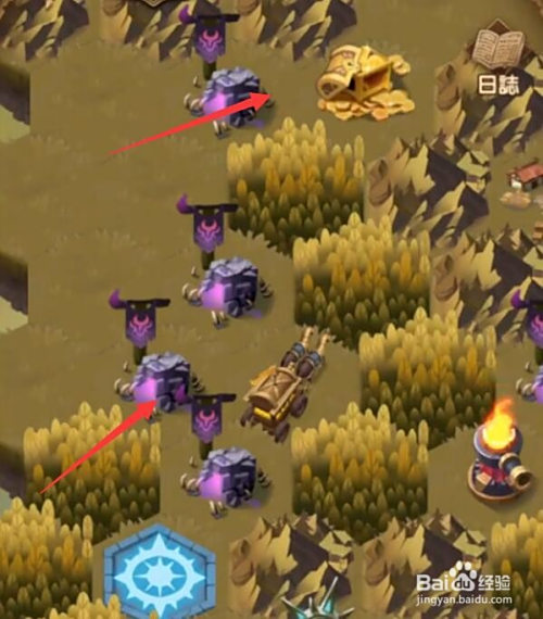 然后点击中心的驿站,将下方的通道打开,玩家就可以点击下方的火炮将boss小怪击败,获得左侧的第一个大宝箱。
