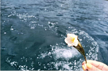 从景区出来,大巴开往泸沽湖船埠,重点就来了,坐猪槽船环湖游。可以看到格姆女神山,微微吹着风,好不舒畅。(摘的小花)