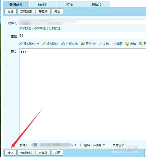 输入收件人邮箱号、本家儿题+正文后,按下发送。