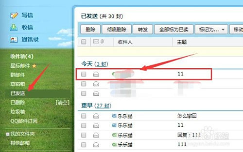 跟着点击【已发送】,再点击方才发送曩昔的邮件。