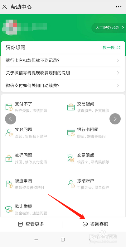 打开帮忙中间后,点击咨询客服,如下图所示: