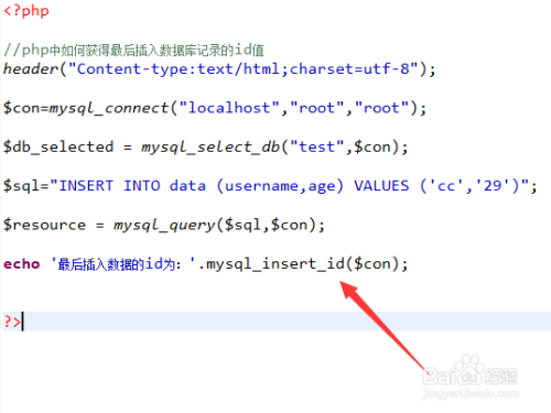 3、利用mysql_insert_id()函数获得最后插入数据库记实的id值,并经由过程echo将id输出在页面上。