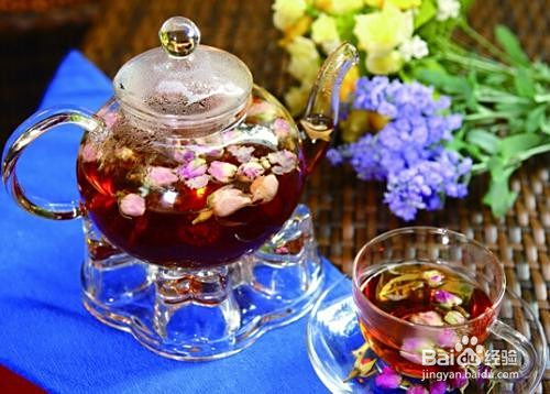 泡玫瑰花茶每次放三五朵就好,可以加点红枣,美容养颜