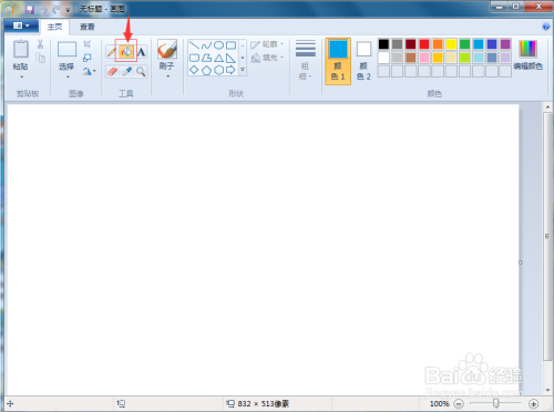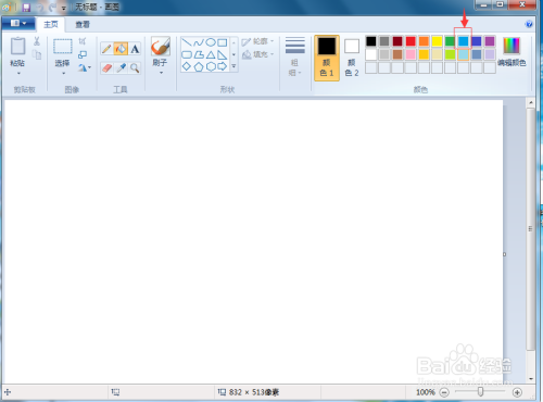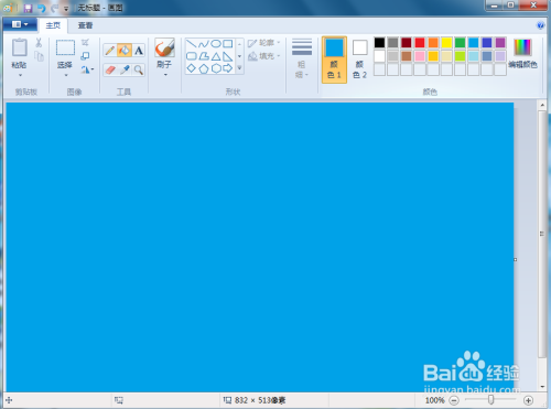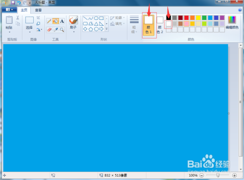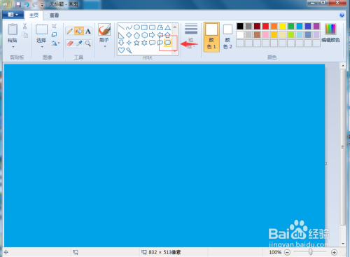 1、打开绘图,点击蓝色,将布景填充为蓝色;