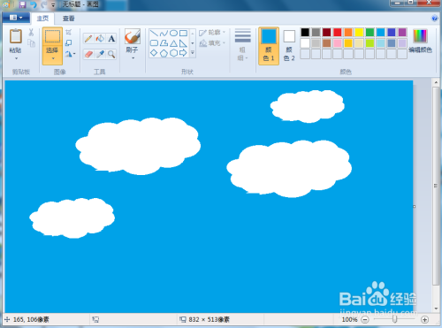 我们就在绘图中画好了需要的蓝天白云图。