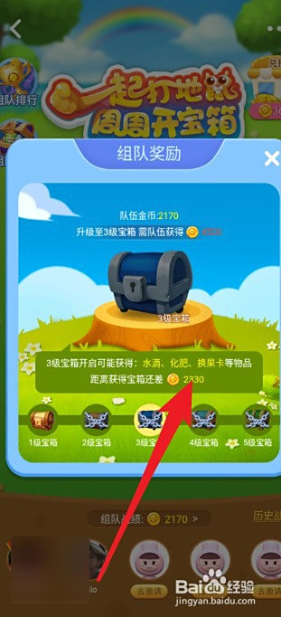 二级宝箱需要3000金币开启,可以获得水滴和化肥