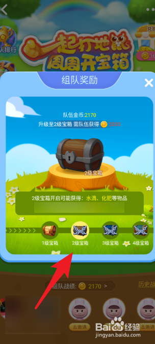 邀请老友打地鼠可以得金币,金币达到必然品级可以主动开启宝箱,一级宝箱是2170金币