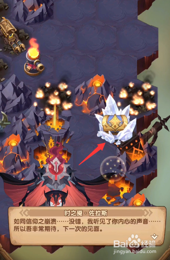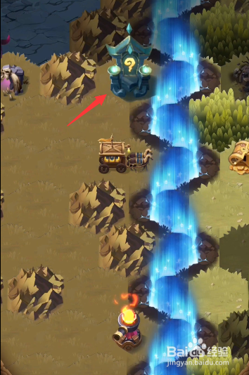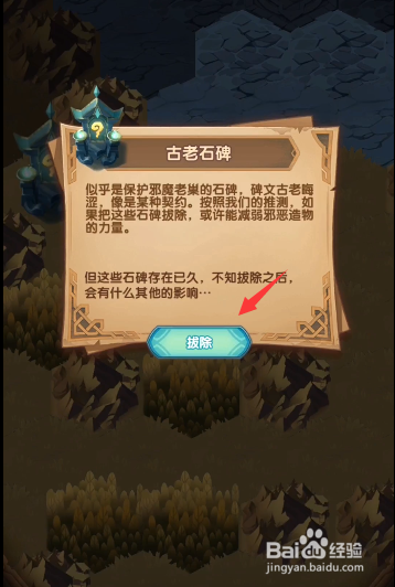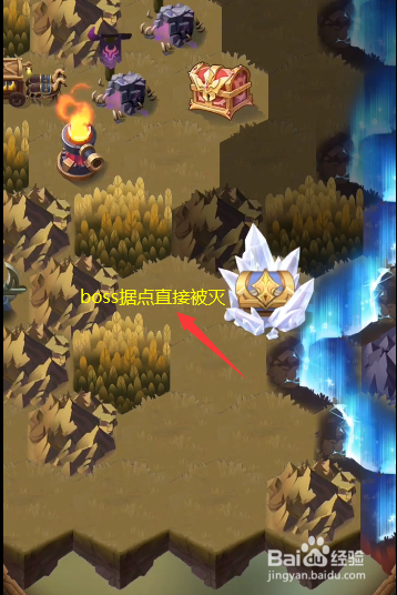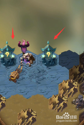 到顶部的boss门前时,先将其身侧的两个石碑铲除,再攻打boss营地。打赢之后右侧就会看到一个红色的传送阵。