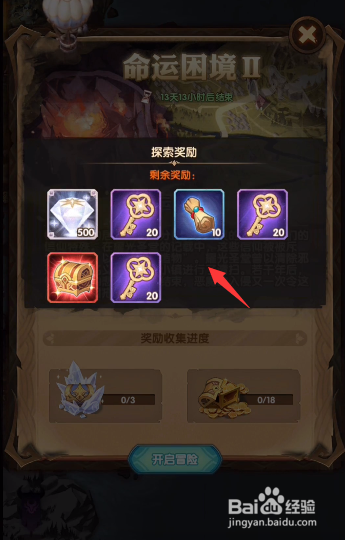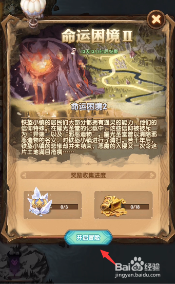 起首,进入游戏,点选奇境探险进入“命运困境2”。