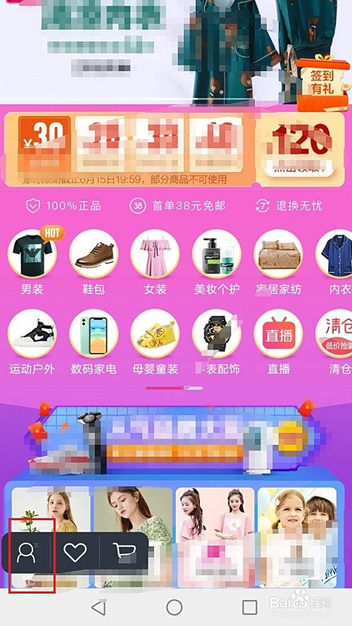第一步手机上打开唯品会,点击小我中间图标,如下图所示: