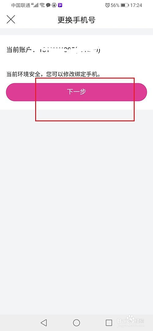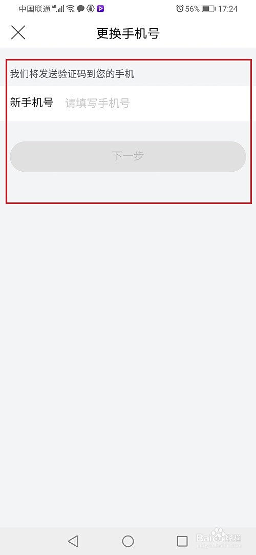 第四步进去改换手机号界面之后,点击下一步,如下图所示: