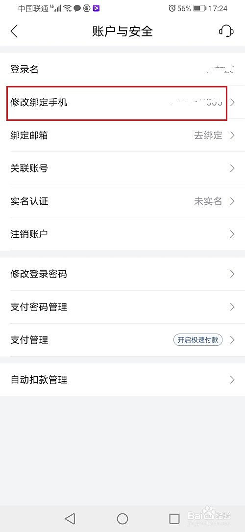 第三步进去之后,点击点窜绑定手机,如下图所示: