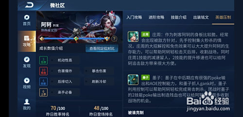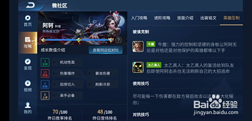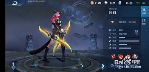 阿珂,刺客英雄,适合打野,2技术位移,1技术二段危险,大招隐身加回血,被动为背后进犯必定暴击;