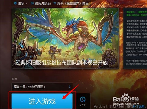 完毕之后,登录战网,选择魔兽宿世界怀旧服,点击进入游戏