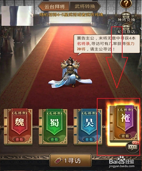 方式三,云台拜将,拜取神魔武将,概率获取魔关;