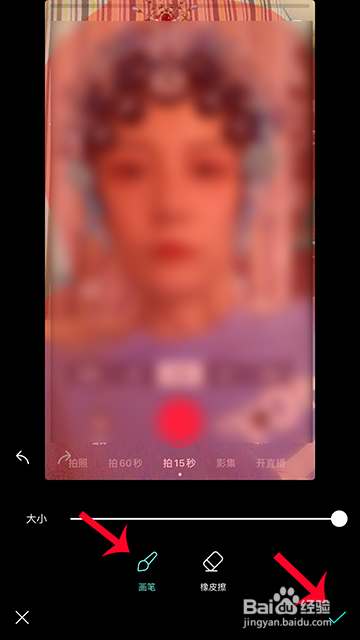 5.选择画笔将要抠出的部门用画笔图上,再点击对勾,加上喜好的布景点击“保留”即可。