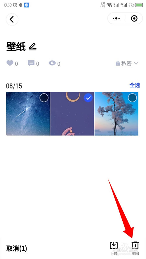 选择好要删除的照片后,点击右下角的删除。如图所示