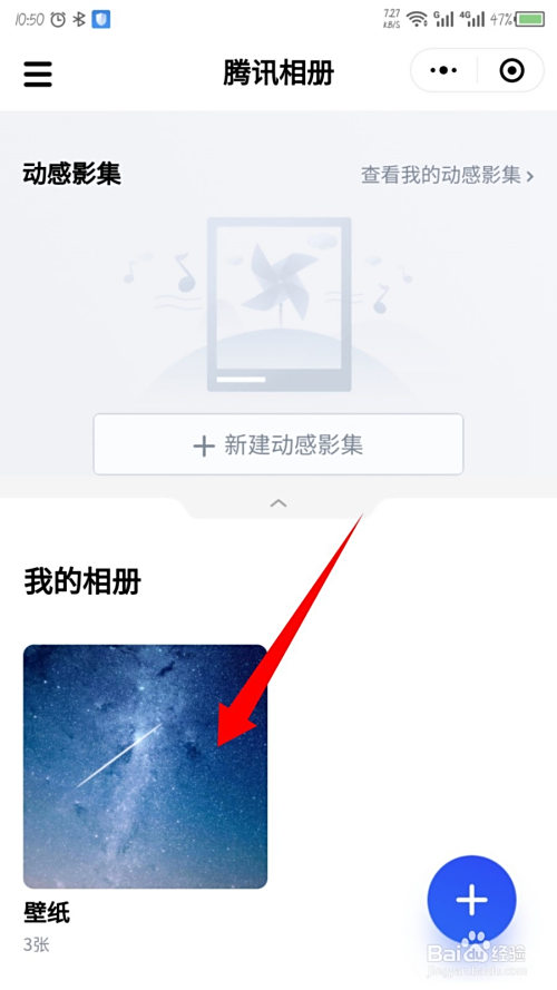 在腾讯相册小程序里面,点击打开相册。如图所示