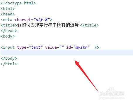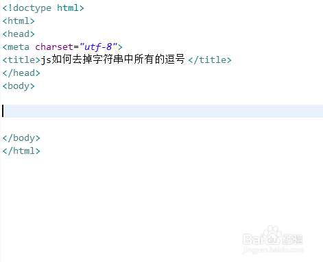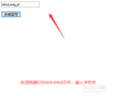 新建一个html文件,定名为test.html,用于讲解js若何去失落字符串中所有的逗号。